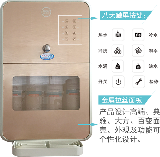 微电脑型全自动控制制水过程,自动冲洗、制纯水、加热系统采用机械防爆双重保险。冷热一体,安装方便,即制即饮。自动冲洗,功能强大又实用。