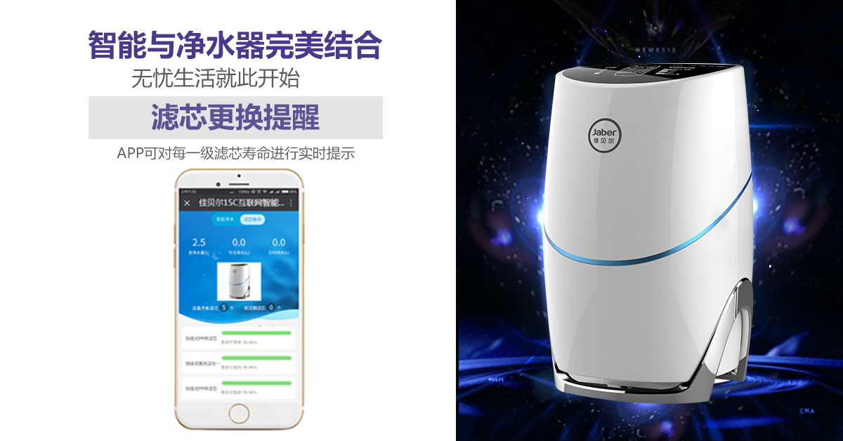 佳贝尔智能净水器在产品功能上体现了净水器的价值:我们购买净水器的主要目的是为了净化自来水,提升水质,保障家庭饮用水的安全和健康。从三个方面确保了净水器的净化作用,并且通过智能WiFi固件链接网络,提供高自由度的线上操作;佳贝尔智能净水器在产品功能有针对性地解决了用户使用不便利、用水安全无保障的问题,从而展现了净水器产品的价值。
