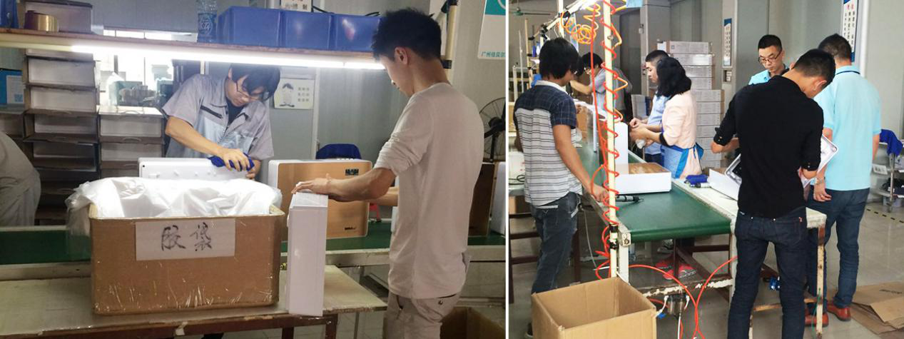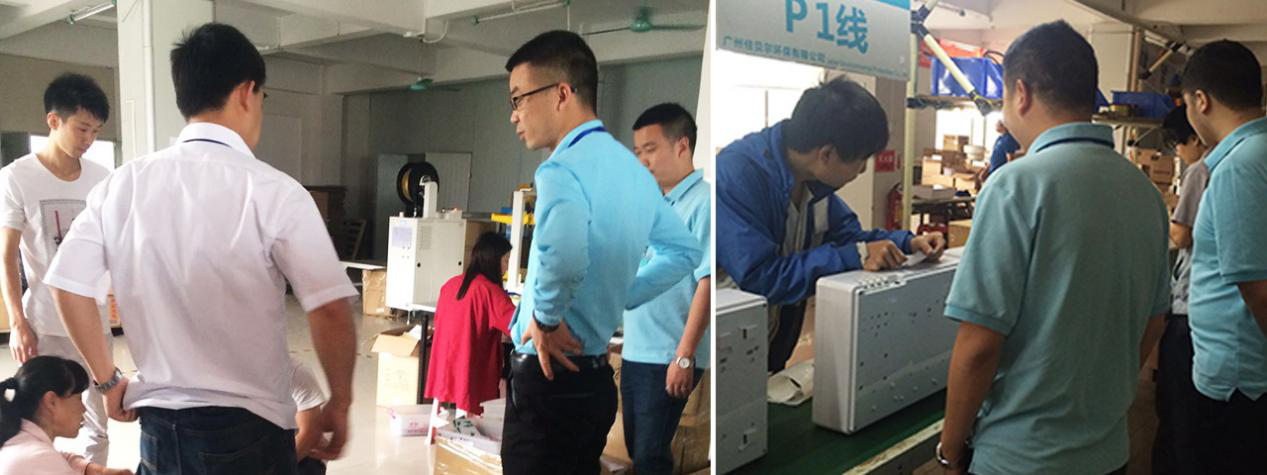 此次质量检查涵盖整个生产链,由广州佳贝尔环保有限公司品牌运营总监何圆带领市场部部长马新玉以及招商部部长刘树凯进行检查,制造部的伙伴积极配合,从物料到配件成体,再到配件组装,最后产品过滤测试,每个环节都细细查看。