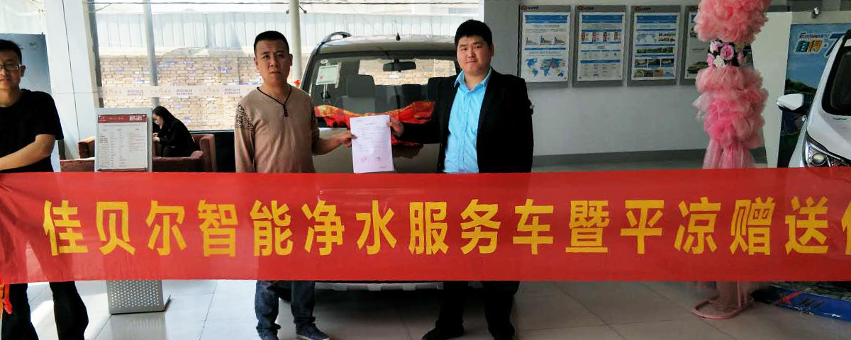 4月28日佳贝尔智能净水服务车暨平凉赠送仪式由甘肃平凉的合作伙伴长安4S店主持,佳贝尔集团大区经理李鹏(先生)做公司代表,为甘肃平凉的优秀代理商伙伴代表送上车钥匙。