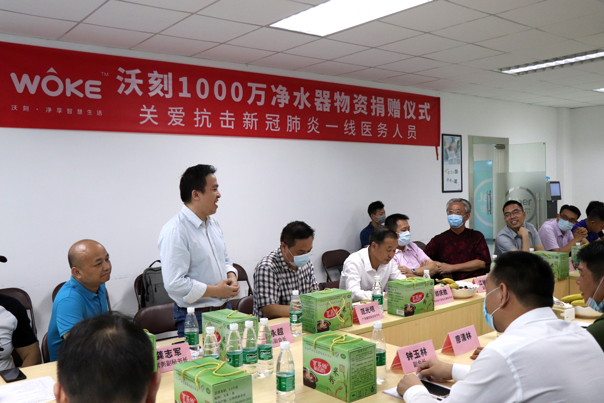 广东省江西商会执行副会长兼秘书长邓庆胜对沃刻集团自疫情防控阻击战打响以来,积极捐赠千万净水器物资关爱抗疫医护工作人员的爱心举动与社会责任感给予了充分的肯定。邓副会长高度评价沃刻集团为“五好企业”:项目好、产品好、效果好、服务好、模式好。