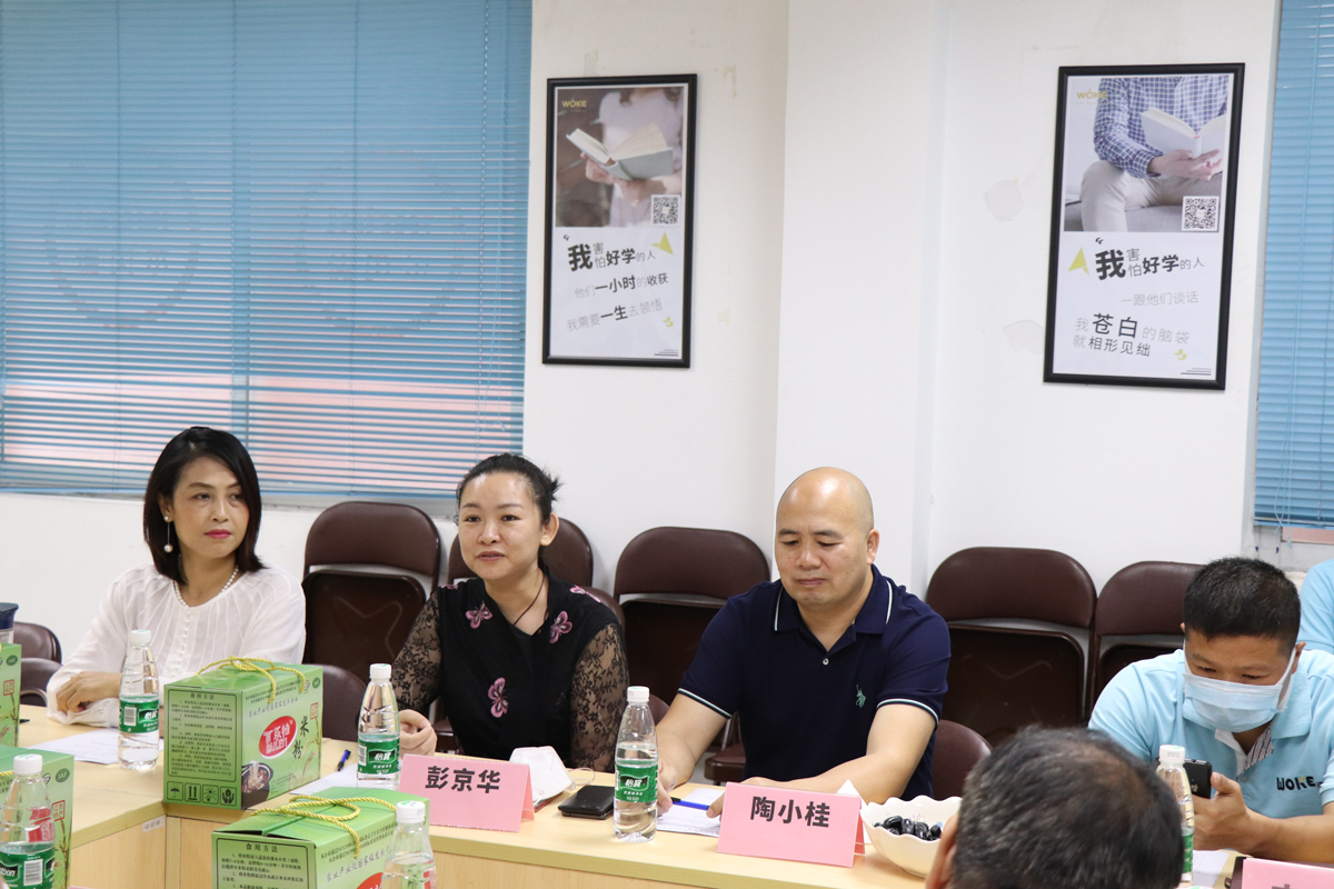 5 月 14 日上午,广东省江西商会副会长刘颂、副会长江林峰、执行副会长兼秘书长邓庆胜等领导一行二十人在秘书处的陪同下走访了广州的会员企业——沃刻集团,交流心得经验,受到了沃刻集团总裁陶小桂、董事彭京华的热情接待。