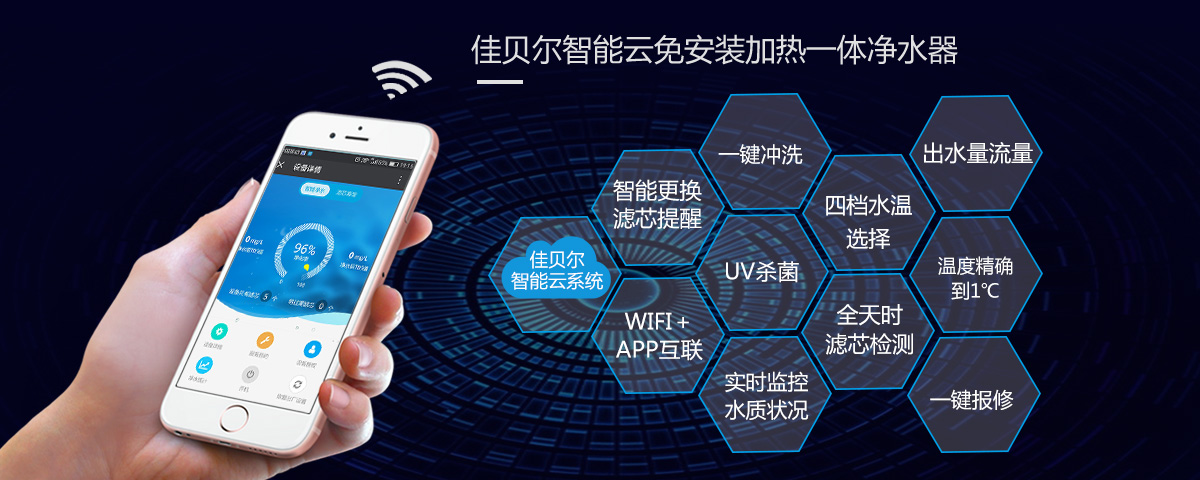 操作及显示面板采用的是触摸感应控制,这种设计是现代主流的产品设计。因为机械开关往往会随着使用时间的增长变得不灵敏,而触摸感应则不存在这种问题,通过操作及显示面板可以完成对净水器的大部分操作。佳贝尔X5与云米X5在面板上的设计大同小异,都是主流风格,而在功能上略有不同,相同的都有滤芯寿命、WiFi、安全锁、温度显示、水量显示、水温1度加减的调控等,不同的是佳贝尔X5在面板设计上多了UV抑菌、细分了水温档次,少了水量的选择。在手机APP智能平台的操作界面上,都有这些功能。总之,就功能来说,云米X5与佳贝尔X5并无差别。而这中面板的差异化设计的背后无疑有着不同的定位,这无疑将会影响到用户体验,那么佳贝尔X5在实际应用过程当中比之云米X5又会有怎样的用户体验呢?