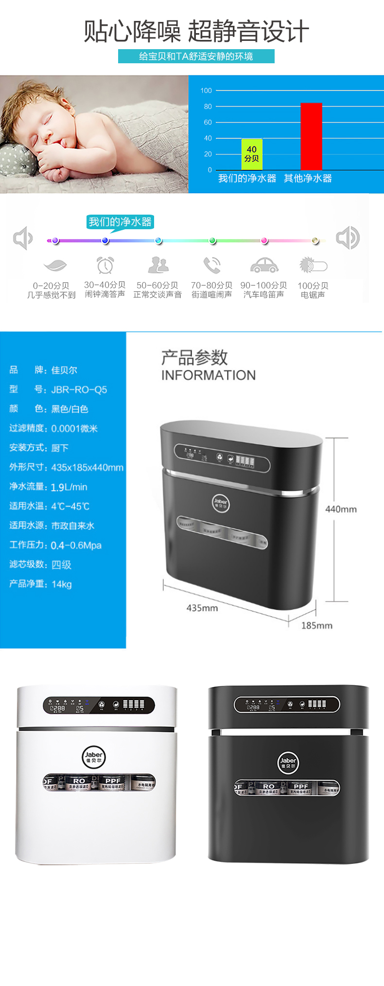 产品描述:原水、纯水TDS值一目了然,智能算法更换滤芯的时间,水路一体化集成设计,减少接口,使用安心。滤芯更换便捷杜绝漏水隐患,随时检测净水器的功能和水质,对净水器的故障一目了然,静音用电更安全,国内先进设计理念打开顶盖维修