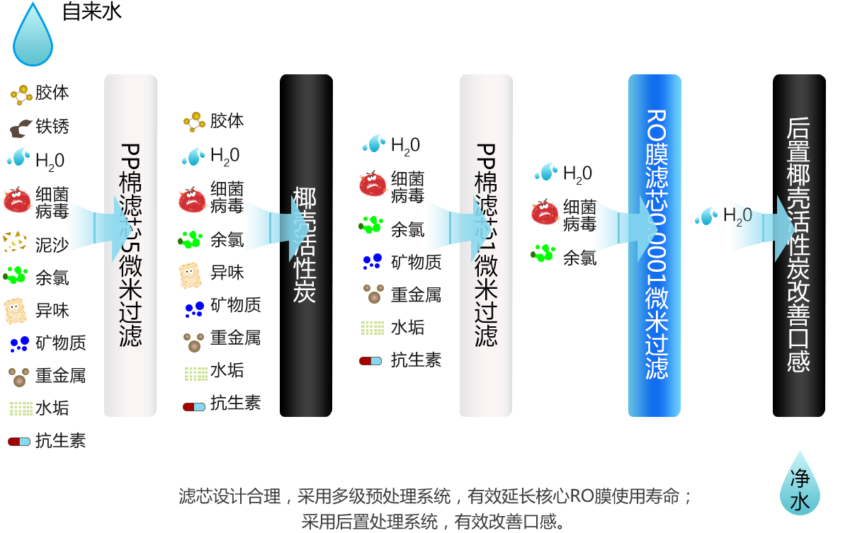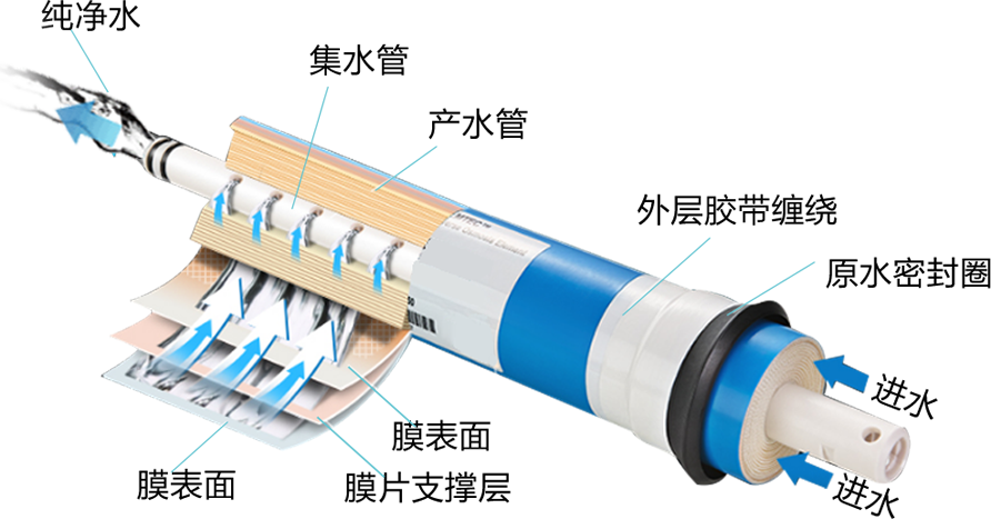 佳贝尔采用高精密反渗透膜,过滤精度0.0001微米,除菌率高达99%以上,脱盐率高达96%-98%以上,能去除水中的一切杂质。