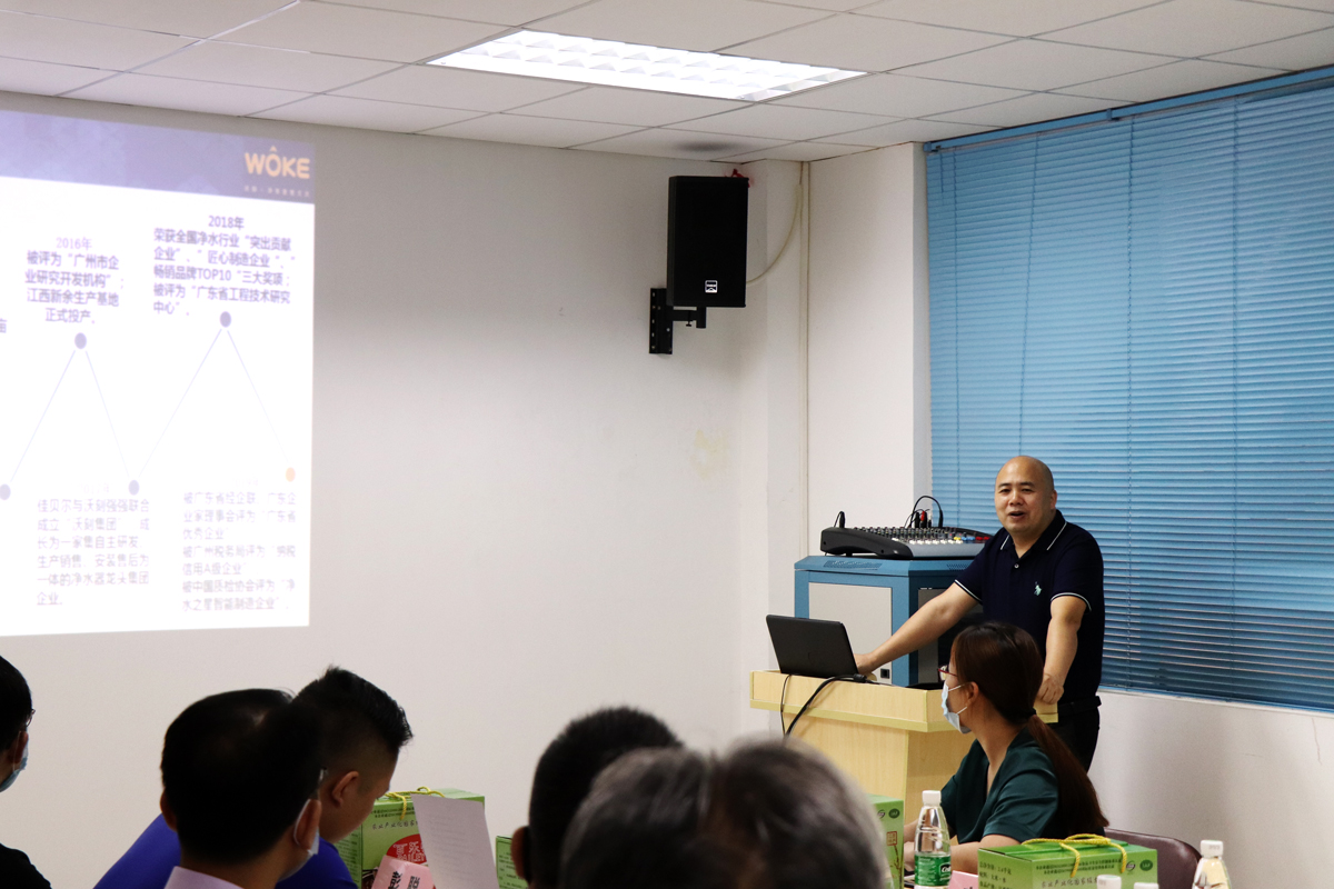 此次座谈会在广东省江西商会常务副秘书长龚志军的主持下顺利召开。座谈会上,沃刻集团总裁陶小桂向来访的各位商会领导简要介绍了企业的经营情况、技术研发、生产规模、发展计划等。从座谈分享中得知,沃刻集团自 2005 年创立以来一直专注于净水器的研发、生产与销售,在江西新余还拥有 160 多亩自建的生产基地。经过 10 多年的沉淀,沃刻集团聚集了专业的研发队伍和具有丰富行业经验的工程师队伍,以确保相关技术在净水行业的领先地位,为广大消费者提供安全健康的净水产品。