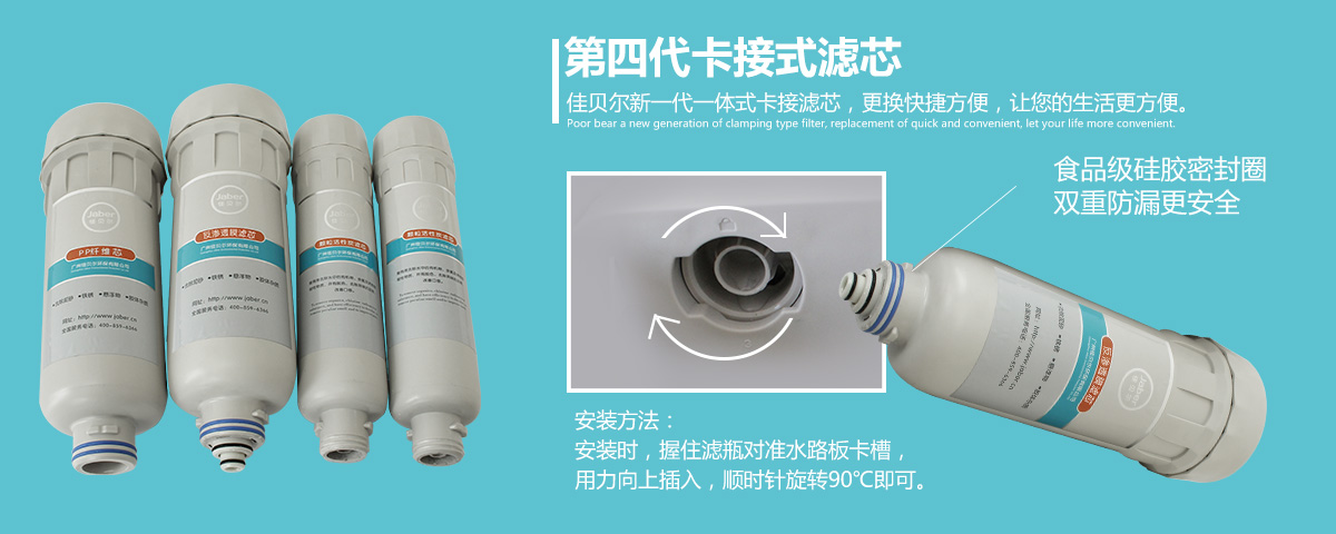 超低的1:1微废水比傲视群雄,佳贝尔水波纹互联网智能纯水机(JBR-RO-Q3)在传统的过滤工艺上进行了改良,增设了一道废水循环系统形成了更先进的二级物理过滤循环系统,把废水重复利用,层层循环层层过滤,保证了超低1:1微废水比;整机的材料设计包括外壳、滤瓶、管道等均采用的是高品质的ABS食品级材质,用料更安全,产品使用更放心;除此之外;其独有的集成水路板设计技术,能有效防止由漏水漏电导致的险情,真正保卫家人的安全健康用水;由佳贝尔设计团队耗时六个月,并经过在严格的各种模拟环境下的攻坚测试的第四代滤芯卡接式插槽设计,不但具有很好的防漏水功能,还能让安装和换滤芯更加的方便。
