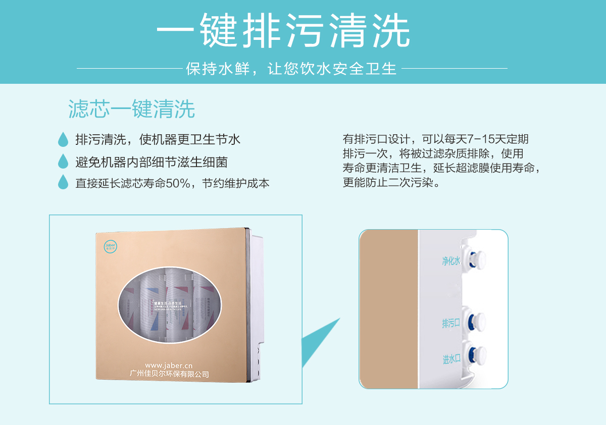 佳贝尔“智能云系统”颠覆传统经营模式,低门槛、终身五免政策、创新技术掌控,能够对水机滤芯寿命到期和水机故障实现提示,轻松一键报修,让用户享受智能服务带来的便捷。