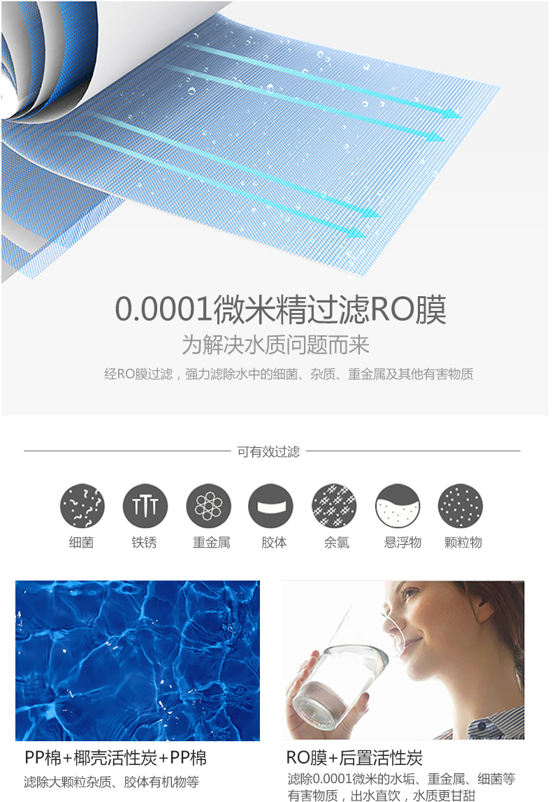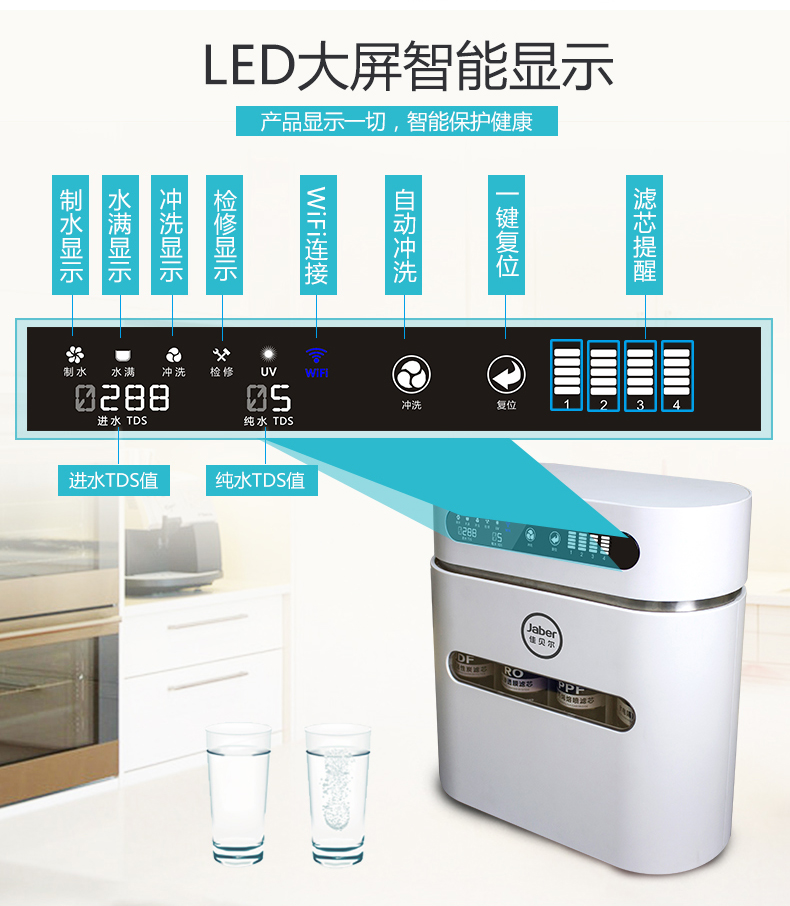 产品描述:原水、纯水TDS值一目了然,智能算法更换滤芯的时间,水路一体化集成设计,减少接口,使用安心。滤芯更换便捷杜绝漏水隐患,随时检测净水器的功能和水质,对净水器的故障一目了然,静音用电更安全,国内先进设计理念打开顶盖维修